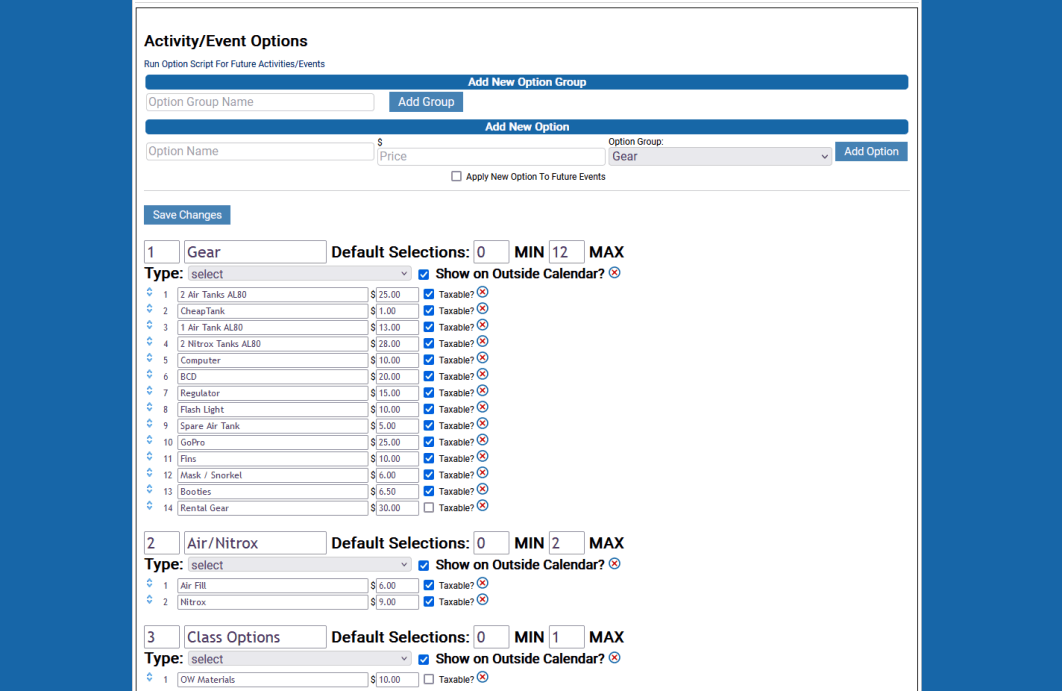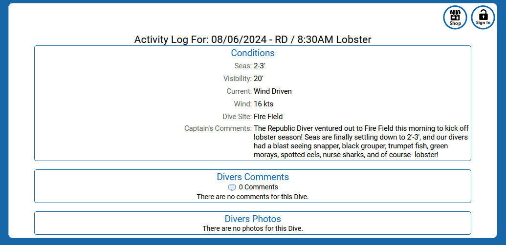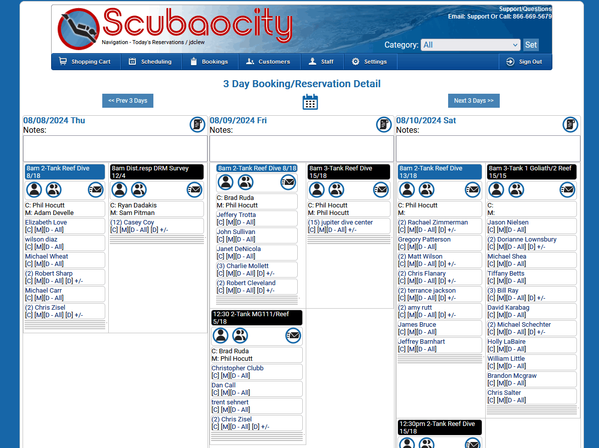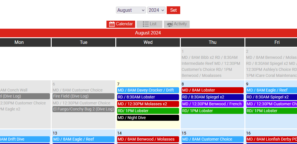 Schedule Dives, Charters, Snorkel Trips, Activities, Events, Trips, and Classes.