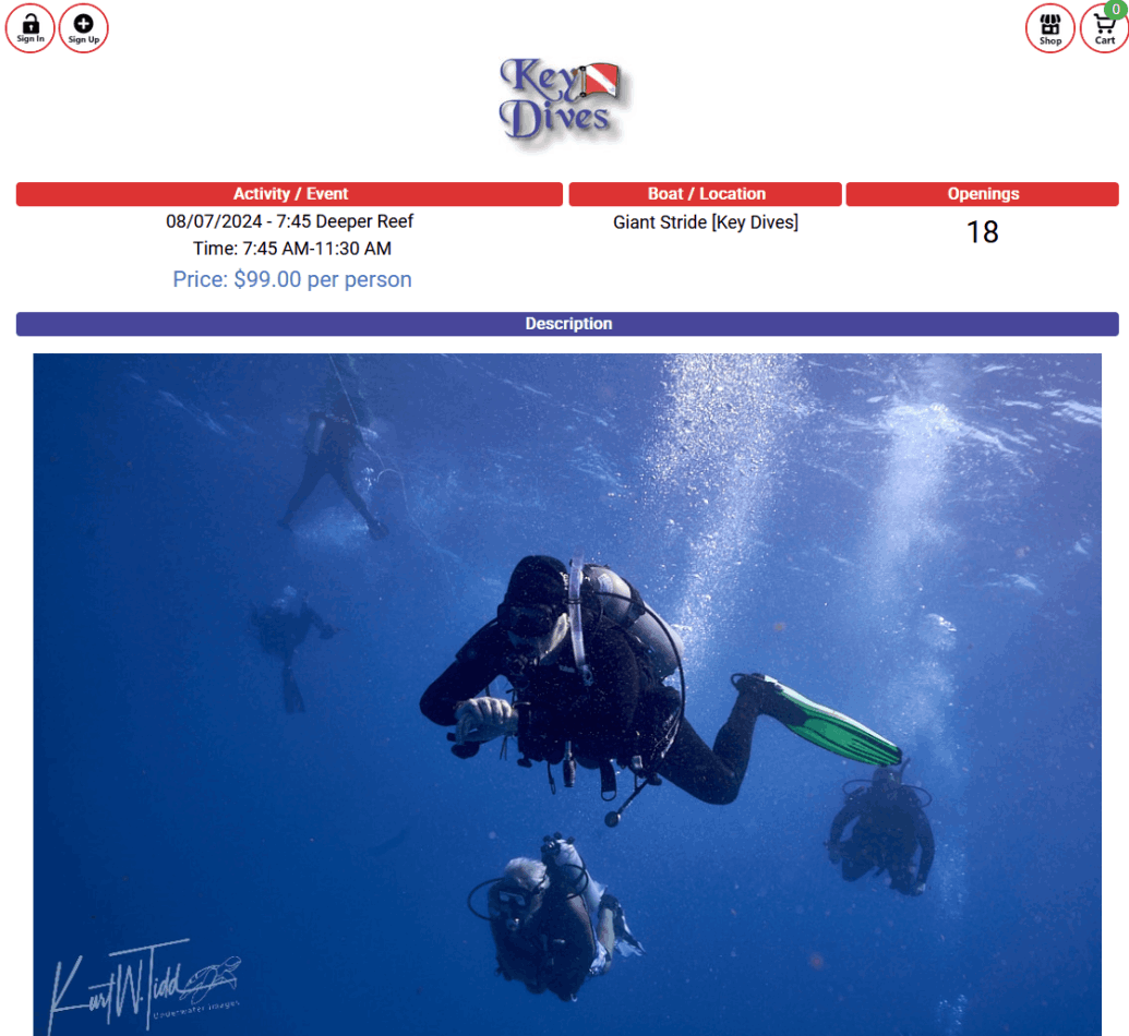 Dedicated Scuba Diving Reservation System, E-Waivers, Shopping Cart and Connected Point Of Sale