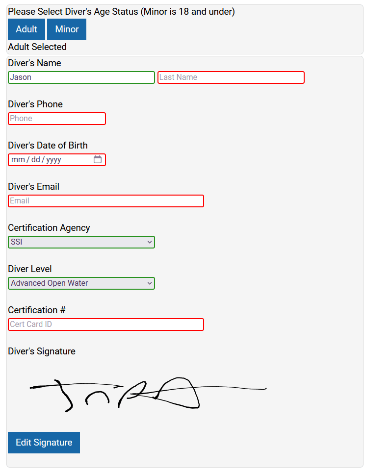 Scubaocity E-Waivers.